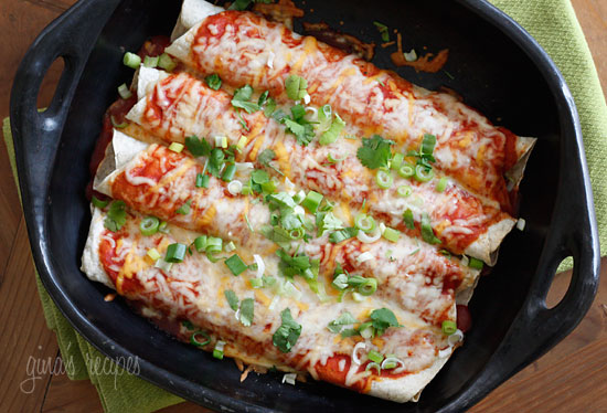 Butternut Squash and Black Bean Enchiladas – Butternut squash, black beans, tomatoes, cilantro and spices are simmered in a skillet with green chilies and jalapeno, then wrapped in tortillas and baked in the oven with enchilada sauce and cheese – these vegetarian enchiladas are delicious and perfect for meatless Mondays, or any day of the week!